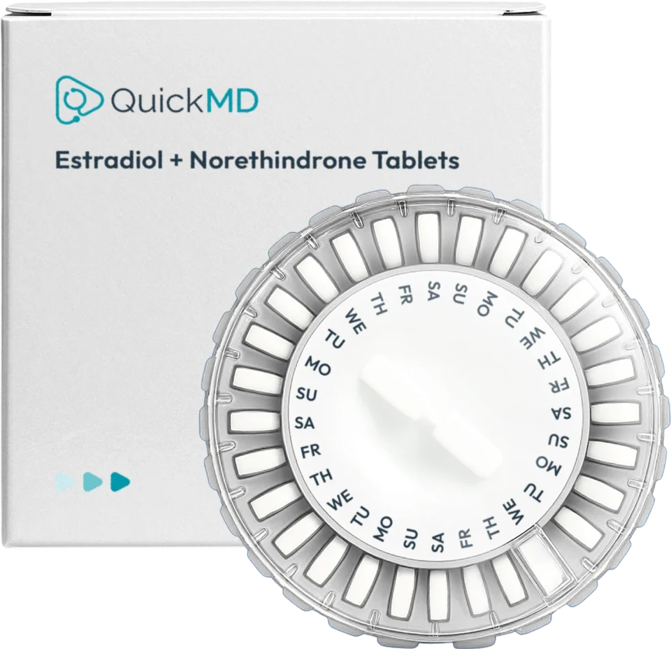 Estradiol and norethindrone tablets are $34 with QuickMD’s cash-pay option, giving you clear, upfront pricing with no hidden fees. Many women prefer this route because it’s simple, stress-free, and allows their medication to be shipped right to their door.